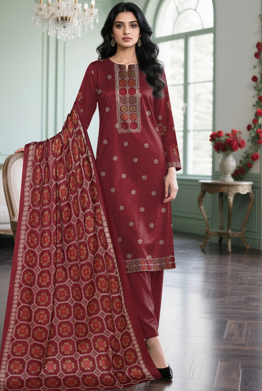 MUSHQ | DHANAK 3 PIECE UNSTICHED FULL HEAVY EMB SUIT WITH HEAVY EMB SHAWL FOR WINTER 2025-26