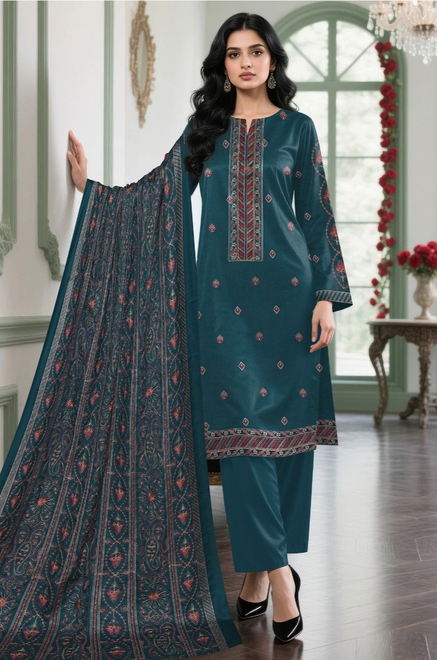 AZURE | DHANAK 3 PIECE UNSTICHED FULL HEAVY EMB SUIT WITH HEAVY EMB SHAWL FOR WINTER 2025-26